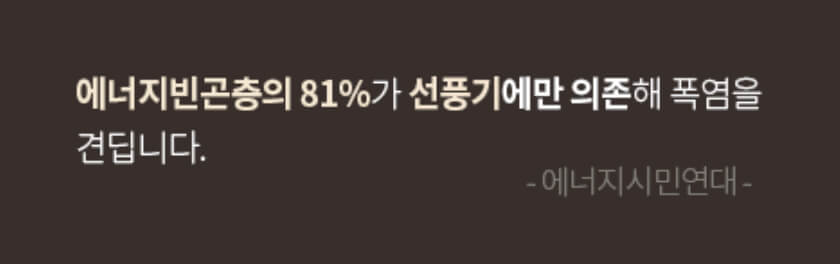 에너지빈곤층의 81%가 선풍기에만 의존해 폭염을 견딥니다.