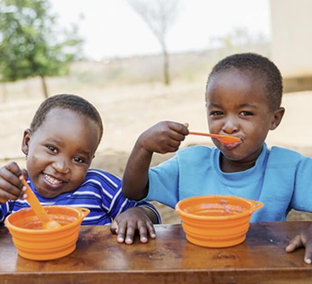 집에 식량이 없어 하루에 한 끼만 겨우 먹는 아이들, 영양실조에 걸리기 일쑤입니다. 영양 가득 식사로 영양 불균형을 막아줄 수 있습니다.