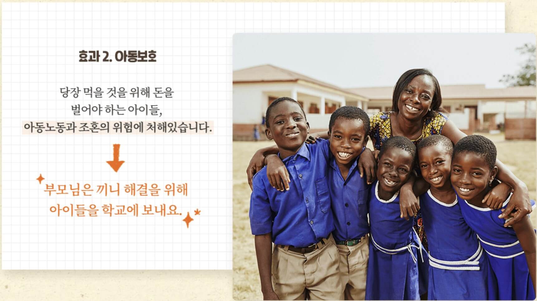 당장 먹을 것을 위해 돈을 벌어야 하는 아이들, 아동노동과 조혼의 위험에 처해있습니다. 부모님은 끼니 해결을 위해 아이들을 학교에 보내고 있습니다.